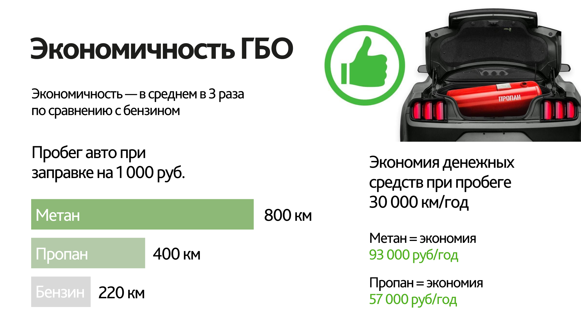 Одним из ключевых преимуществ использования ГБО является экономия на топливе. Заправка газом обходится значительно дешевле, чем бензином — разница может достигать 30-40%. В среднем, водители такси, использующие газ, могут экономить до 700 рублей за смену, что в долгосрочной перспективе делает авто с ГБО по-настоящему выгодным вариантом.
